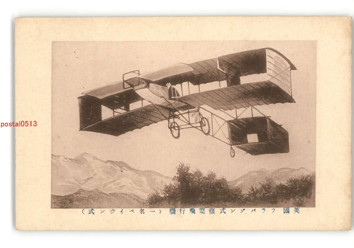 飛行機絵葉書 英国 フラバゾン式複葉飛行機 一名ベイジン式 *剥離有り *傷み有り