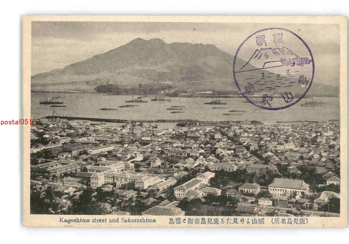 鹿児島 鹿児島名所 城山より見たる鹿児島市街と桜島 *傷み有り