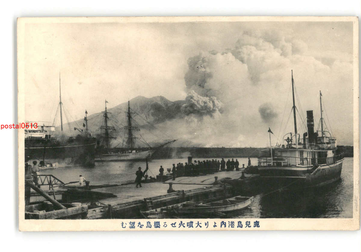 鹿児島 鹿児島港内より大噴火せる桜島を望む *傷み有り