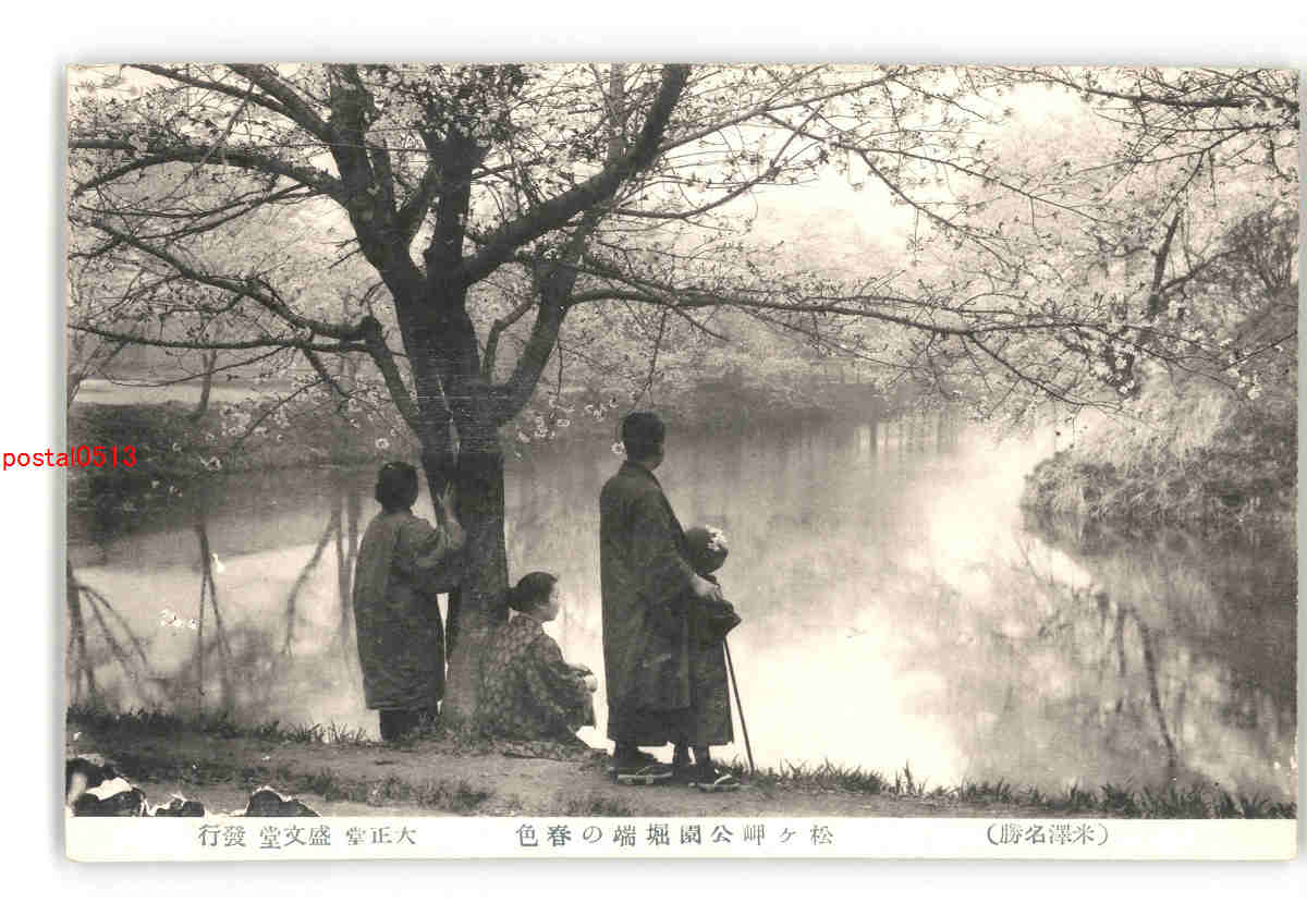 山形 米澤名勝 松ヶ岬公園堀端の春色 *傷み有り