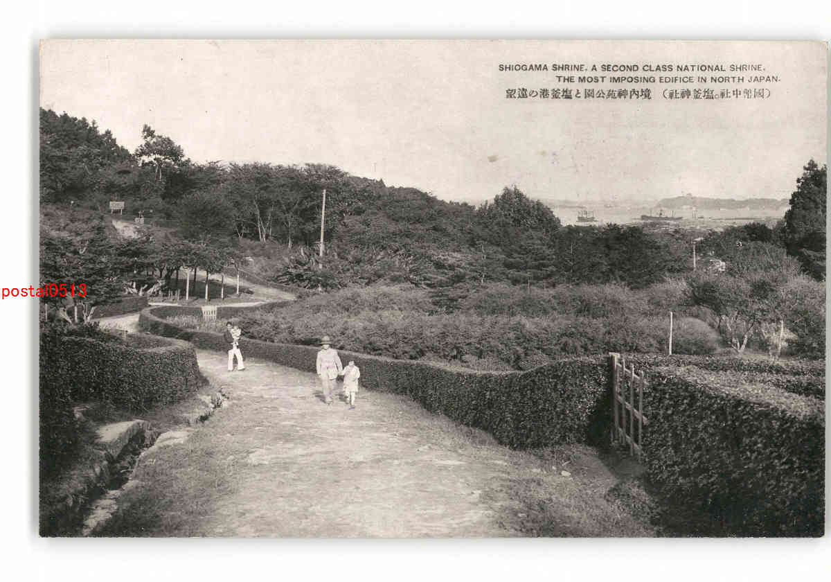 宮城 国幣中社 塩釜神社 境内神苑公園と塩釜港の遠望 *傷み有り
