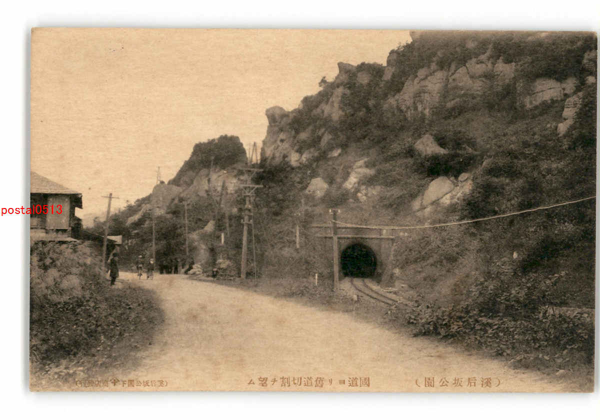 秋田 渓后坂公園 国道より旧道切割を望む *傷み有り