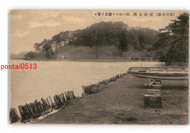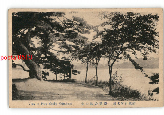 福島 白河名勝 南湖公園 鏡の山より湖面を望む *ピン穴有り *傷み有り