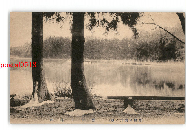 東京 恩賜公園井ノ頭 雪中の池畔 *傷み有り