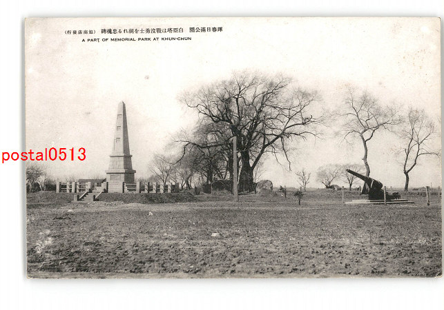 満州 琿春日満公園 白亜塔は戦没勇士を祠れる忠魂碑 *傷み有り