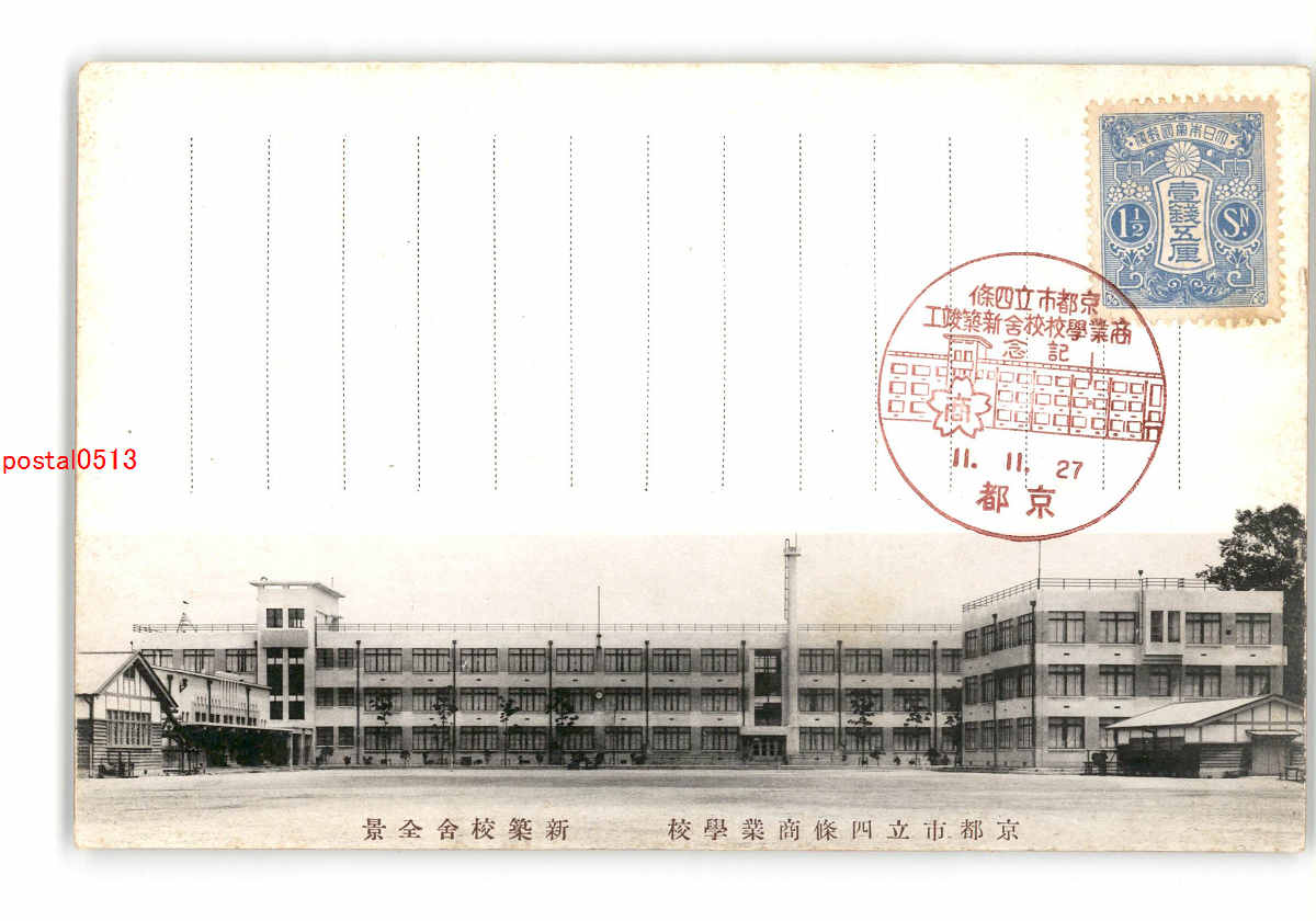 京都 京都市立四条商業学校 新築校舎全景 *傷み有り