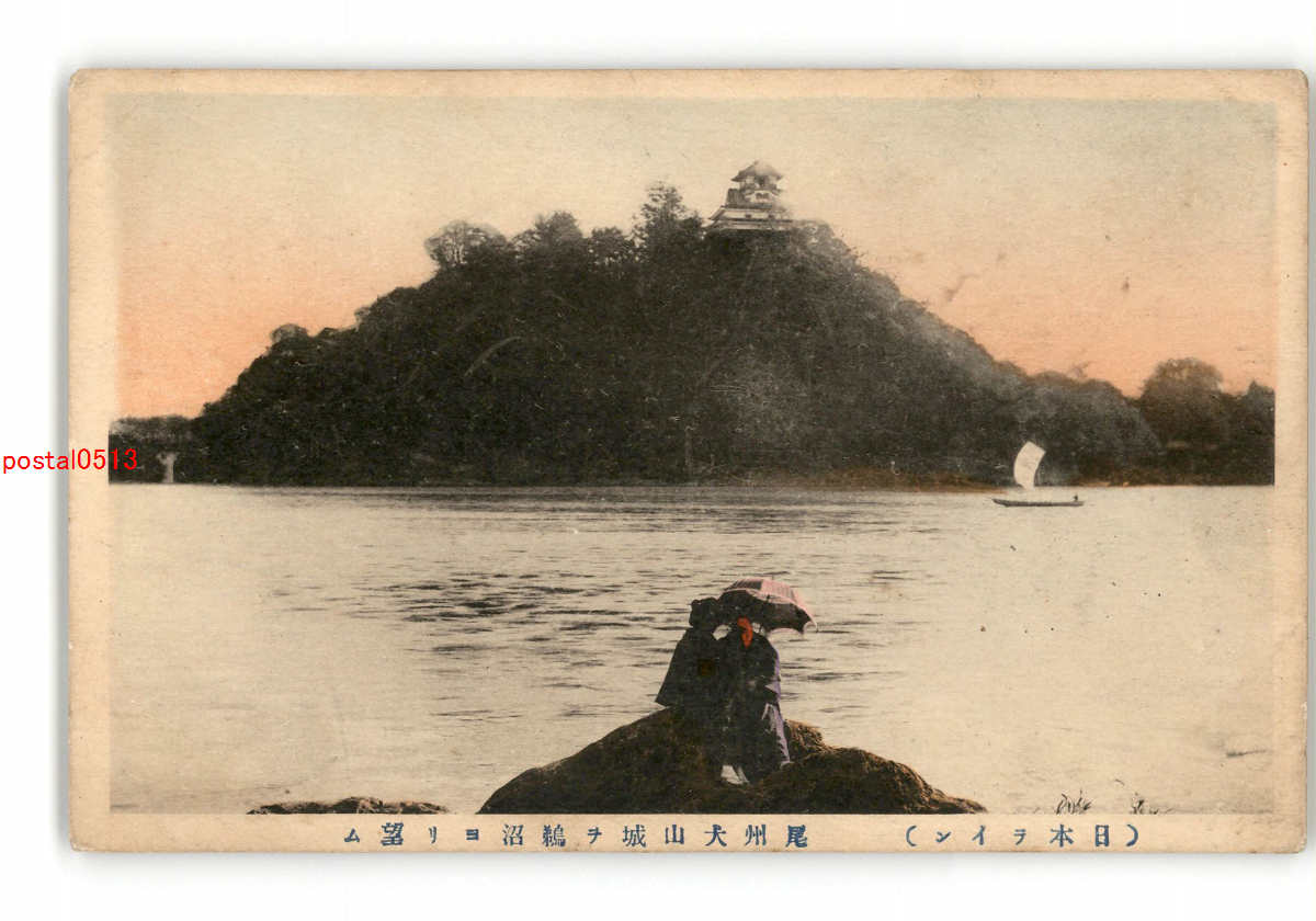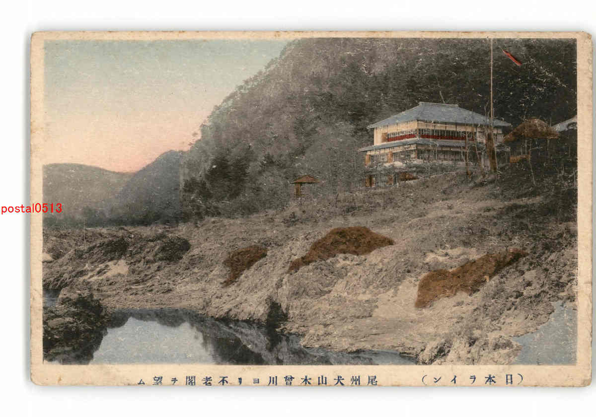 愛知 手彩色 日本ライン 尾州犬山木曽川より不老閣を望む *破れ有り *傷み有り