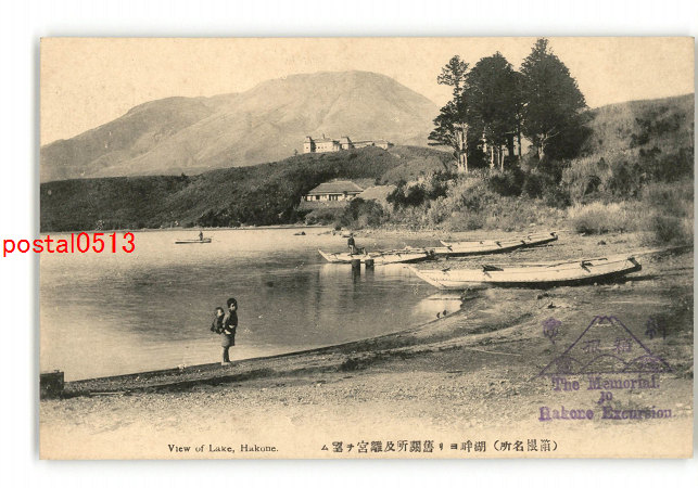 神奈川 箱根名所 湖畔より旧関所及離宮を望む *傷み有り