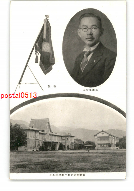山梨 米山学校長 校旗 山梨県立甲府工業学校全景 *傷み有り