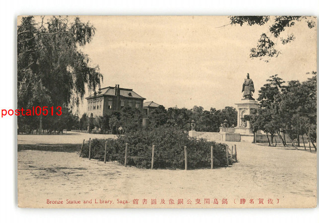 佐賀 佐賀名勝 鍋島閑叟公銅像及図書館 *傷み有り