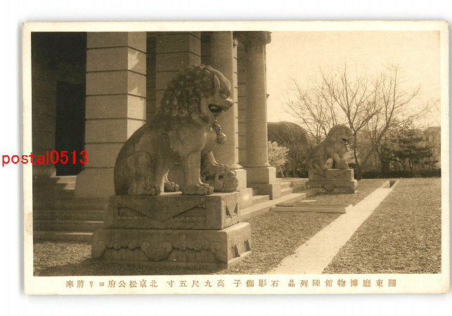 満州 関東庁博物館陳列品 石彫獅子 高9尺5寸 北京松公府より将來 *傷み有り