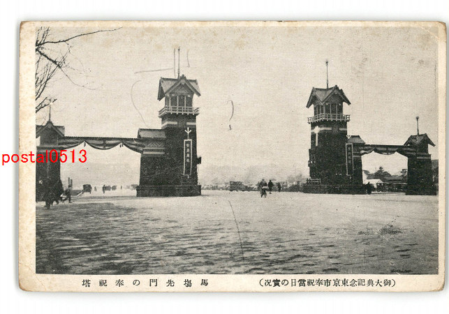 東京 御大典記念東京市奉祝当日の実況 馬場先門の奉祝塔 *傷み有り