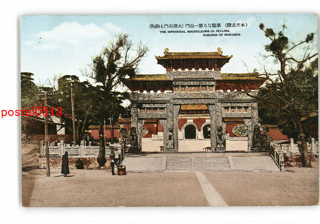 満州 奉天北陵 華麗なる第一山門 大理石門と駒狗 *傷み有り
