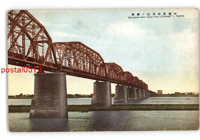 満州 哈爾浜松花江の鉄橋 *傷み有り