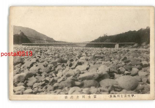 山梨 甲州富士川風景 富士川の釣橋 *傷み有り