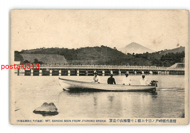 福島 猪苗代湖畔戸の口十六橋より磐梯山の遠望 *傷み有り