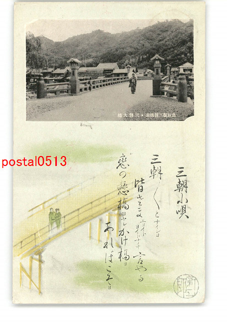 鳥取 唄絵葉書 三朝小唄 三朝大橋 *エンタイア *傷み有り