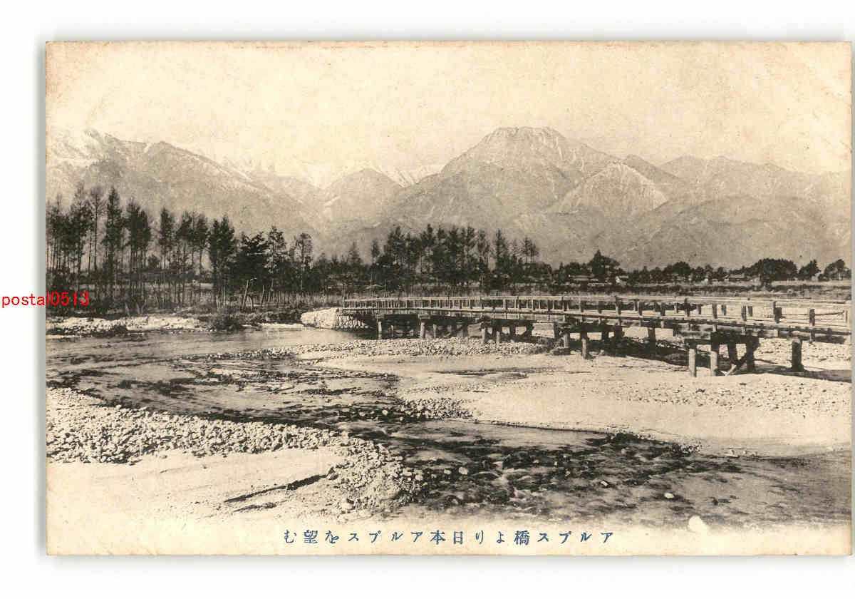 アルプス橋より日本アルプスを望む *傷み有り