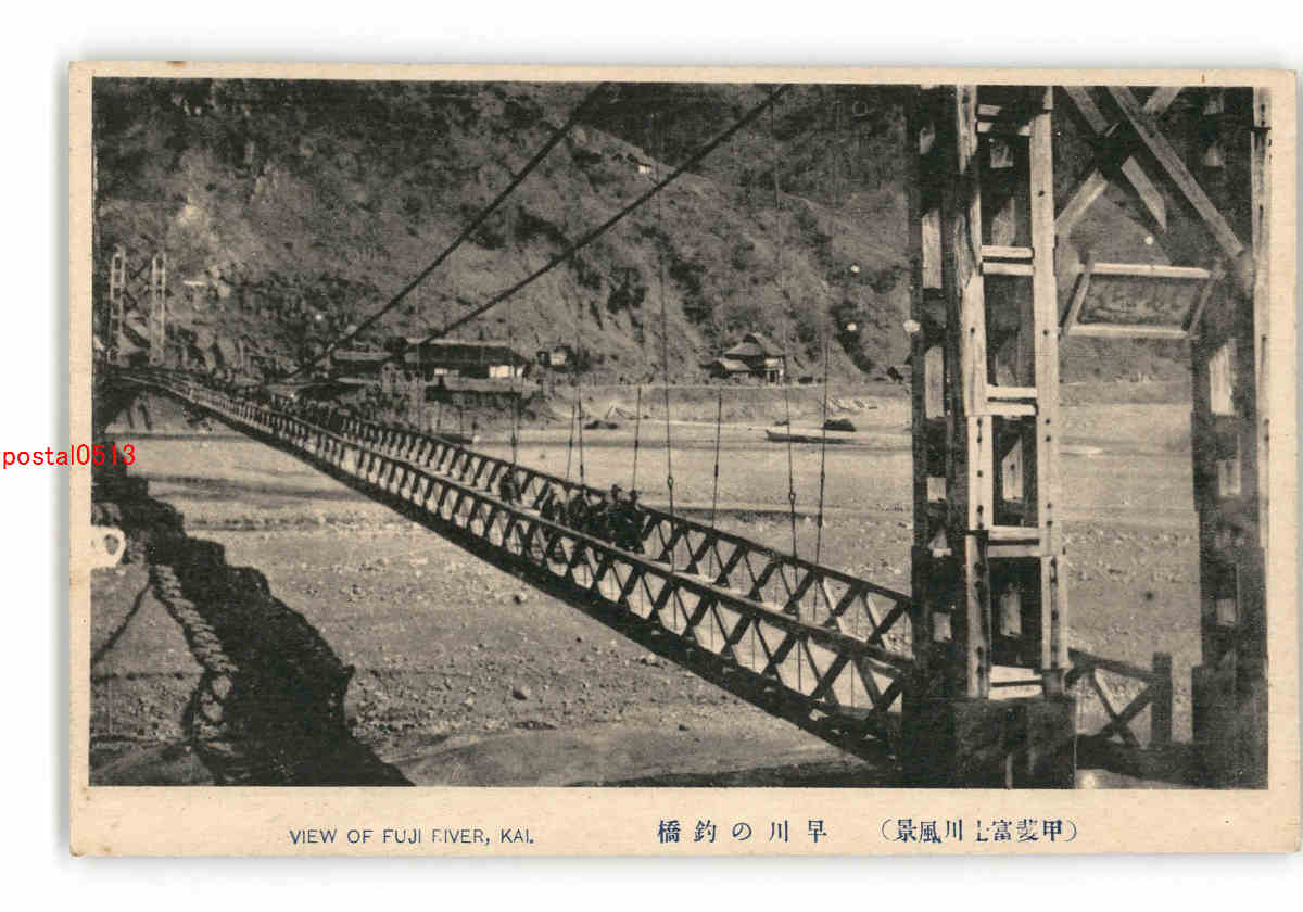 山梨 甲斐富士川風景 早川の釣橋 *傷み有り