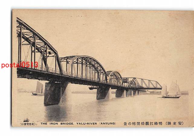満州 安東県 鴨緑江鉄橋開転の景 *傷み有り