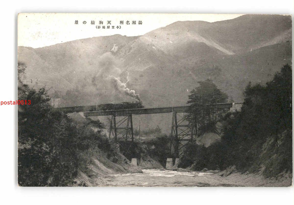 秋田 湯瀬名所 天狗橋の景 機関車 *傷み有り