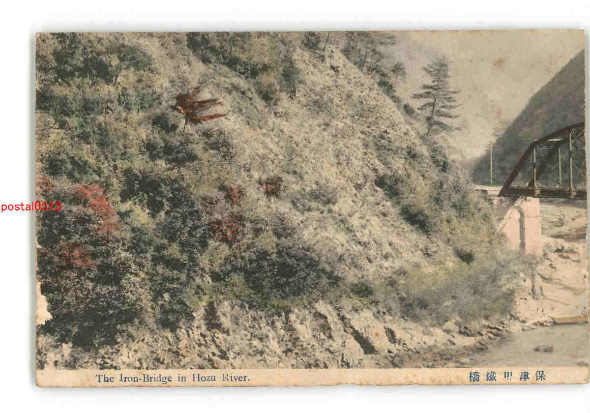 京都 手彩色 保津川鉄橋 *傷み有り