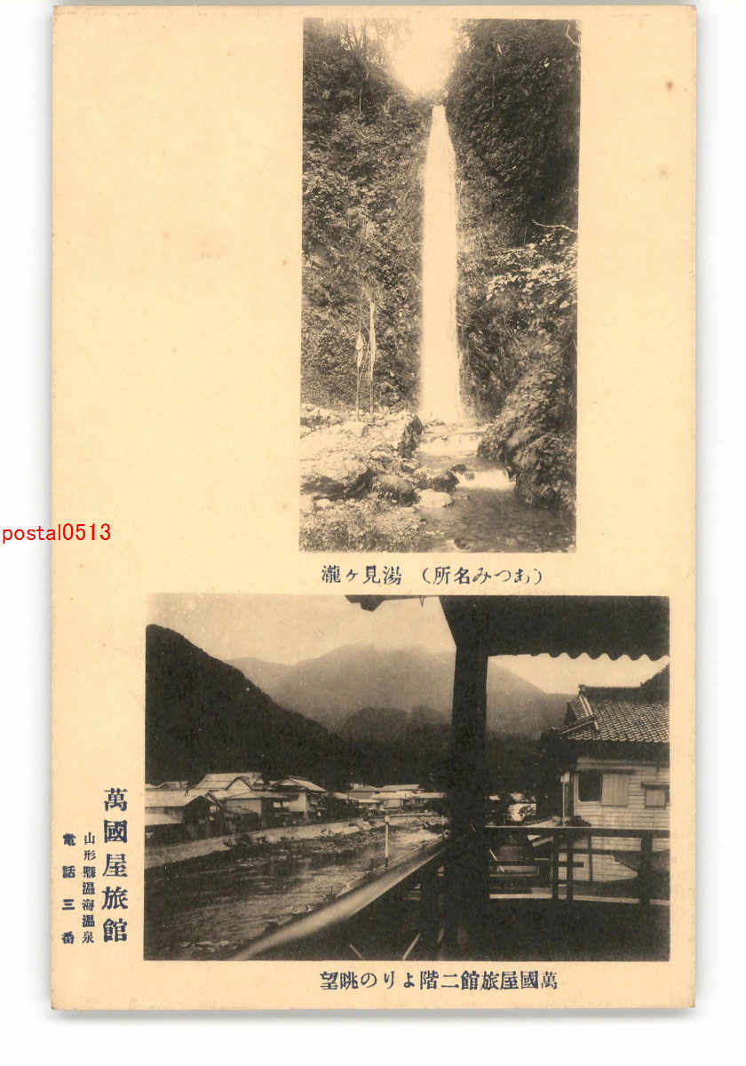 山形 あつみ名所 湯見ヶ瀧 萬国屋旅館二階よりの眺望 萬国屋旅館 *傷み有り