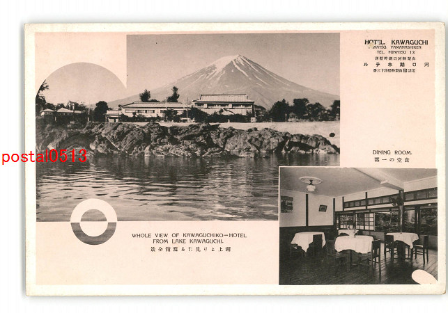 山梨 河口湖ホテル 食堂の一部 湖上より見たる当館全景 *傷み有り