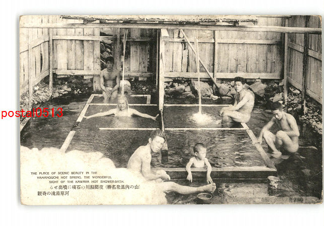 長野 山の内温泉名勝 夜間瀬川の石磧に噴出せる河原湯滝の奇観 *傷み有り