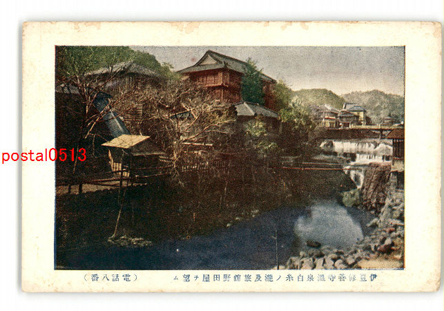 静岡 伊豆修善寺温泉白糸の滝及旅館野田屋を望む *傷み有り