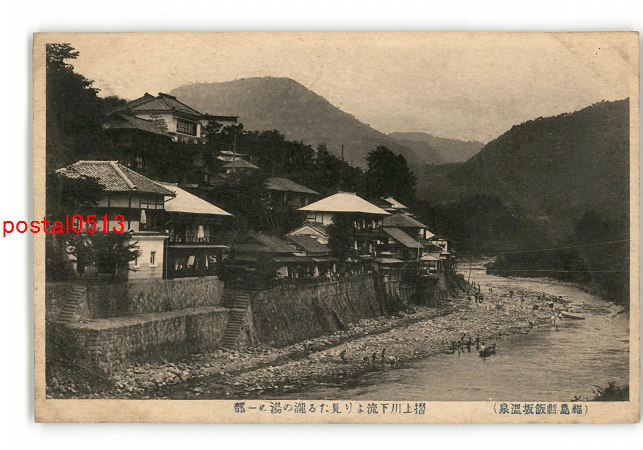福島 飯坂温泉 摺上川下流より見たる滝の湯の一部 *傷み有り