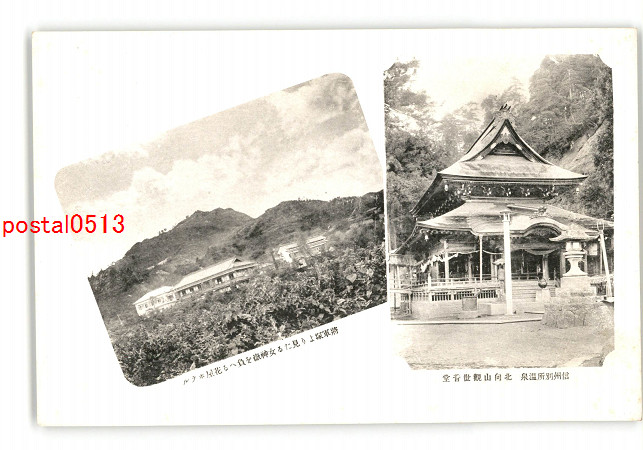 長野 信州別所温泉 北向山観世音堂 将軍塚より見たる女神嶽を負へる花屋ホテル *傷み有り