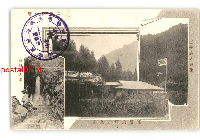 東京 高尾山十勝 三光荘の遠望 蛇滝旅館三光荘 店前弁天滝 *傷み有り