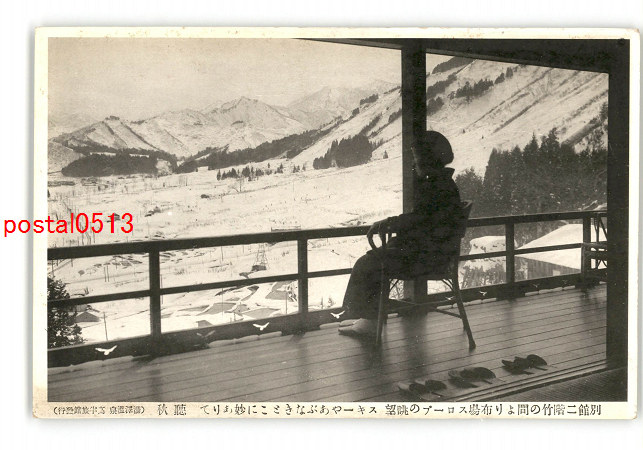 新潟 別館2階竹の間より布場スロープの眺望 スキーやあぶなきことに妙ありて 聴秋 *傷み有り