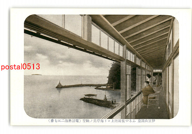 静岡 伊豆山温泉 ふるや旅館階上より海岸美の眺望 *傷み有り