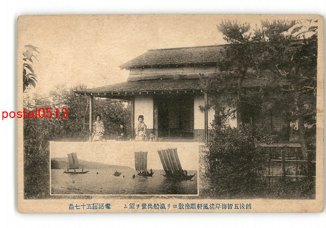 新潟 越後五智海岸清風軒離座敷より漁船出発を望む *傷み有り