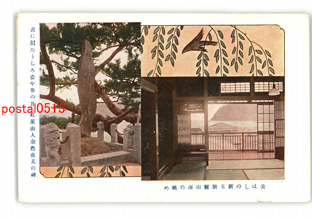静岡 美はしの新玉旅館山海の眺め 宮に似たうしろ姿や春の月 紅葉山金色夜叉の碑 *傷み有り