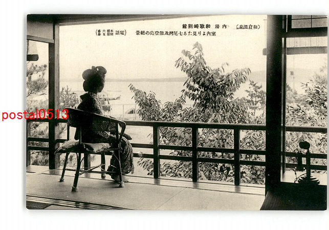 和倉温泉 内湯 和歌崎別館 室内より見たる七尾湾及能登島の絶景 *傷み有り