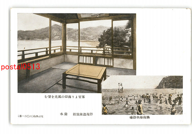 静岡 客室より海岸の風光を望む 熱海海水浴場 熱海温泉旅館 錦水 *傷み有り