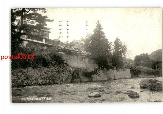 福島 摺上川の清流と小滝館全景 *エンタイア *傷み有り