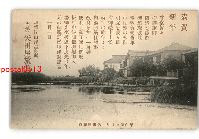 石川 柴山湖より見る矢田屋旅館 *エンタイア *傷み有り