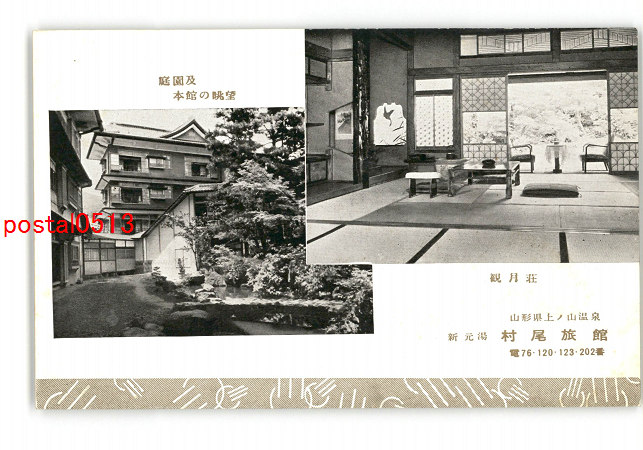 山形 庭園及本館の眺望 観月荘 上の山温泉 新元湯 村尾旅館 *傷み有り