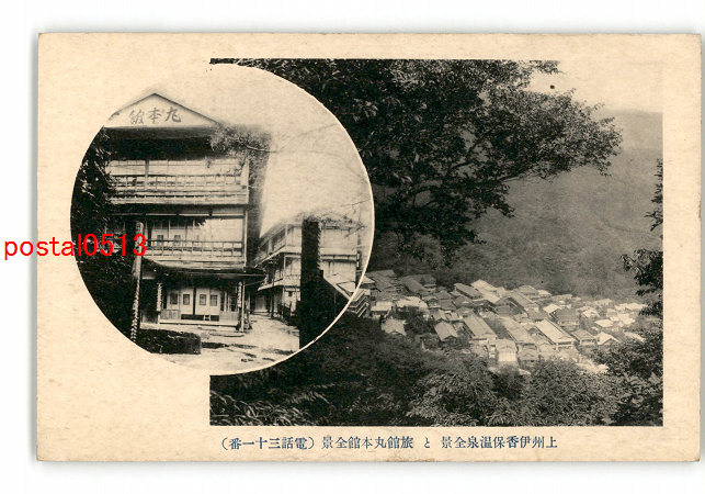 群馬 上州伊香保温泉全景と旅館丸本館全景 *傷み有り