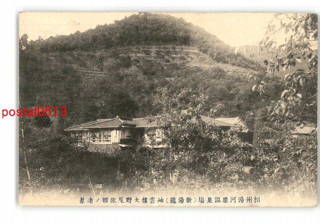 神奈川 相州湯河原温泉場 新湯滝 袖雲楼天野屋旅館の遠望 実逓便エンタイア *傷み有り