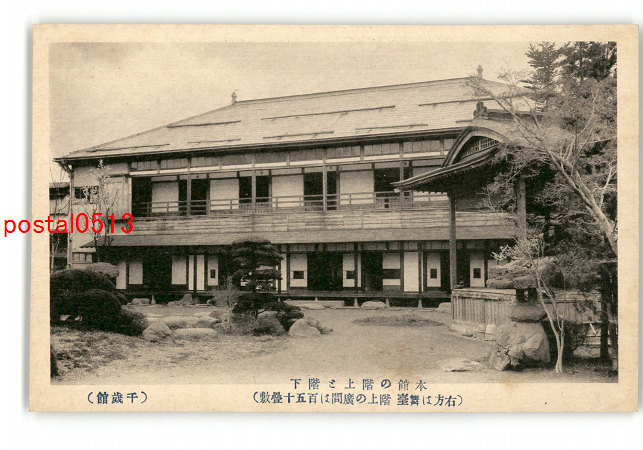 山形 本館の階上と階下 右方は舞台 階上の広間は150畳敷 千歳館 *傷み有り
