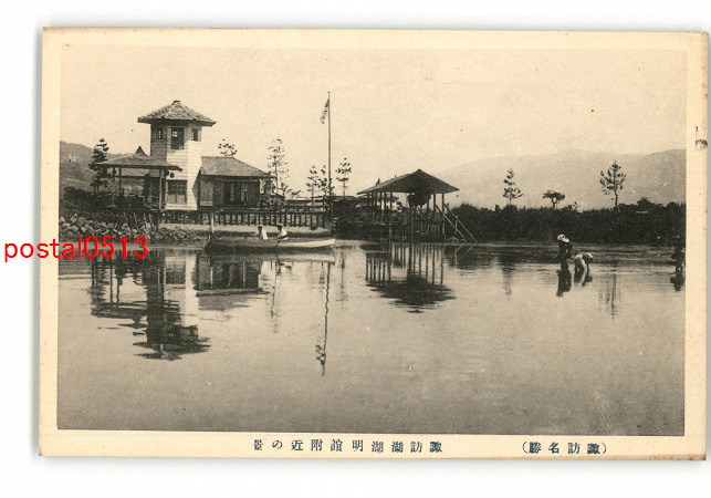 長野 諏訪名勝 諏訪湖湖明館付近の景 *傷み有り