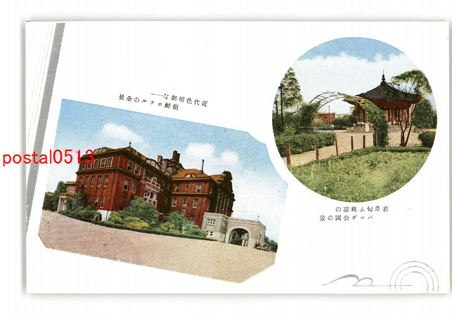 朝鮮 朝鮮ホテルの全景 若草匂ふ爽涼のパコダ公園の景 *傷み有り