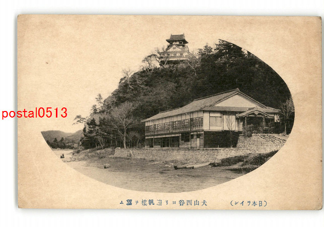 愛知 日本ライン 犬山西谷より迎帆楼を望む *傷み有り