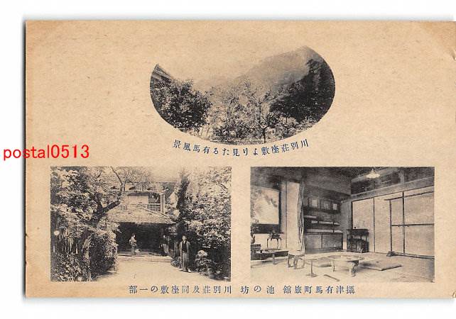 兵庫攝津有馬町旅館 池の坊 川別荘及同座敷の一部 川別荘座敷より見たる有間風景 *アルバム跡有り