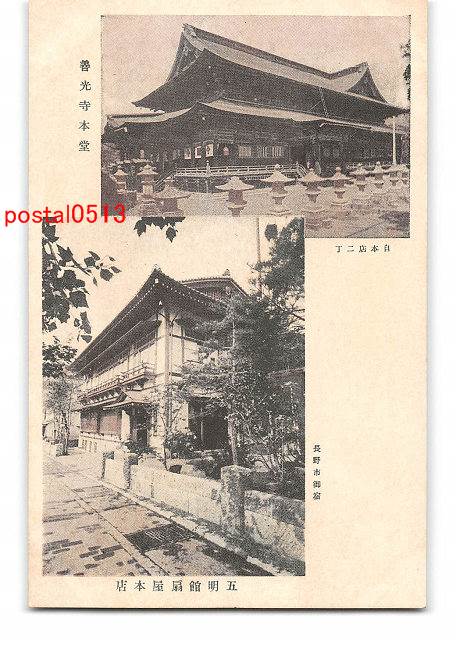 長野善光寺本堂 自本店二丁 長野市御宿 五明館扇屋本店 *アルバム跡有り
